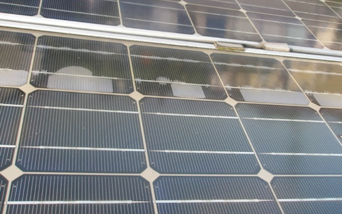 - Delaminatie, dus het loslaten van de verschillende lagen (glas, lijm, cellen, lijm en folie) van het laminaat, als gevolg van indringing van vocht. De panelen op de foto zijn van Shell en werden verkocht tussen 2005 en 2010. Als ze van die vlekken hebben, zullen ze ook niet veel meer opbrengen.