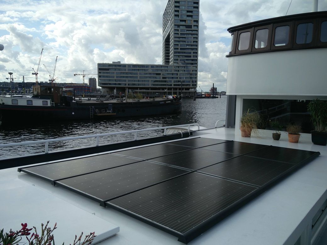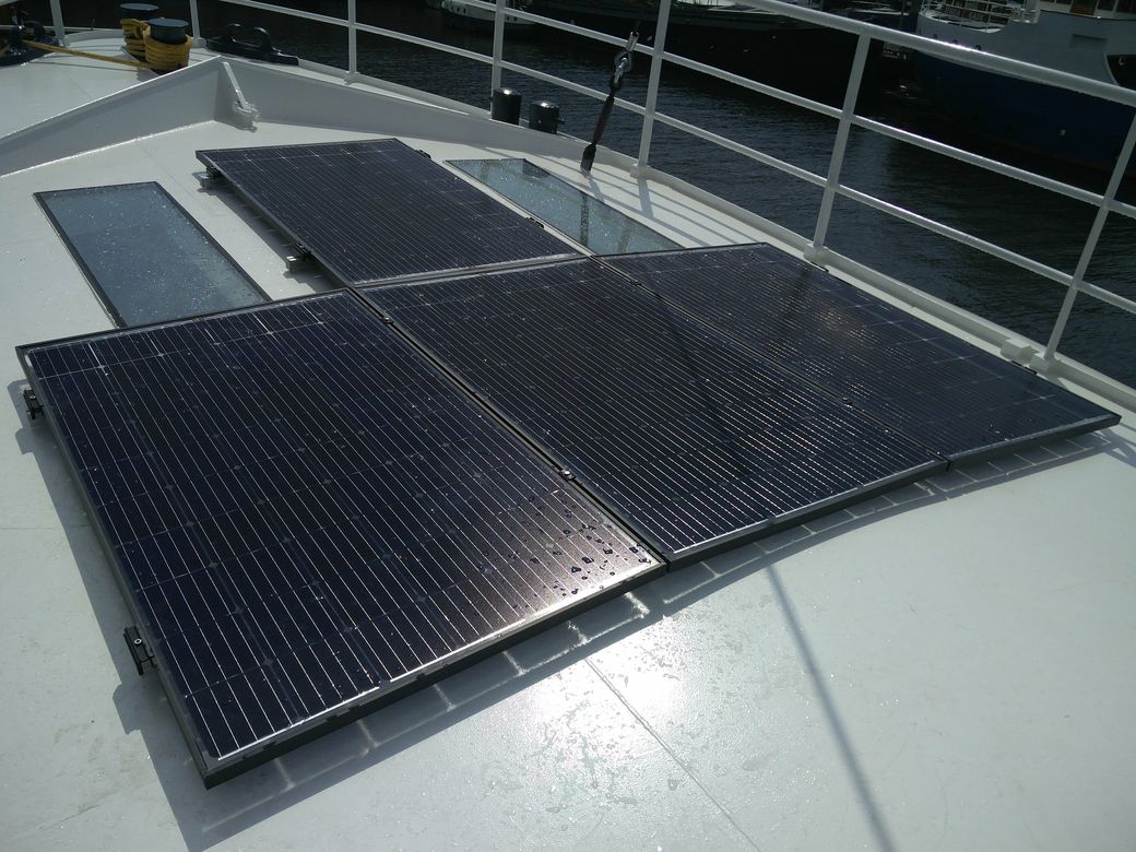 Advies, selectie en installatie voor een 7,25kW zonnepanelensysteem op een woonschip.